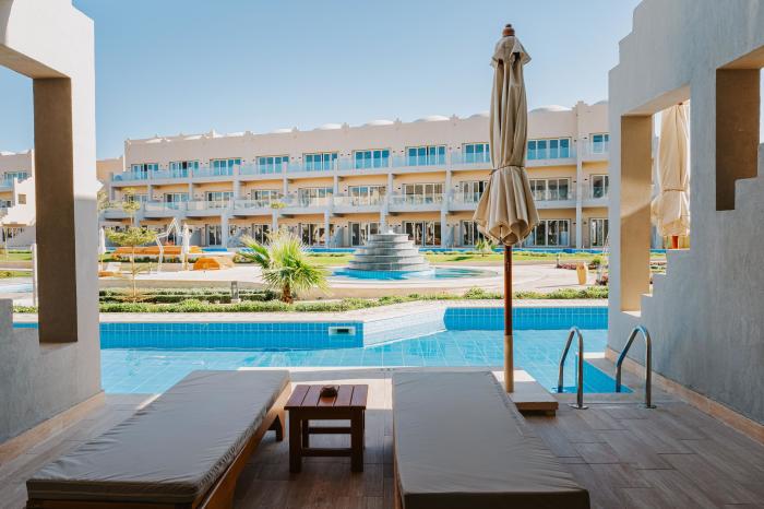 Das Hotel ist neu. Am 15 .März eröffnet. 2 Wohnheiten sind erst bewohnbar. Gebaut wird überall. Vom Strand kommt man nicht direkt ins Wasser. Nur über Steg( nichts für Kinder). Man kann aber alles vom Schwesterhotel Akassia Beach Resort mitbenutzen. Dort gibt es einen größeren Wasserpark. Die großen Rutschen sind aber nur zu bestimmten Zeiten offen. Das direkte Nachbarhotel (Akassia Swiss Resort) darf aber nicht mitbenuzt werden. Dort gibt es kleinen direkten Zugang zum Meer.