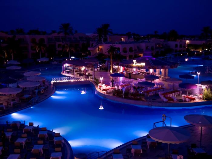 Das im maurischen Stil gehaltene Hotel begeistert sonnenhungrige Gäste mit seiner Lage am weitläufigen Privatstrand in der Makadi Bay am Roten Meer. Die Luxusanlage besticht durch seine außergewöhnliche Architektur und die Vielzahl an Restaurants. Im großzügigen Gartenbereich befindet sich die 8.000 Quadratmeter große, reizvolle Poollandschaft. Das vorgelagerte Korallenriff mit seiner Artenvielfalt lädt zum Schnorcheln ein. Im Hotel ist ein Minimarkt und am Strand sind weitere Geschäfte vorhanden. In die Grand Mall und ins Zentrum von Hurghada besteht ein regelmäßiger Bustransfer (€).