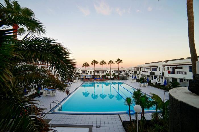 Zentral und dennoch ruhig gelegen ist die Ferienanlage im lebhaften Puerto del Carmen. Nur einen kurzen Fußmarsch entfernt, befindet sich eine große Auswahl an Restaurants, Geschäften und Unterhaltungsmöglichkeiten, sowie der goldene Sandstrand Playa Grande. Entspannung finden Urlauber im idyllischen Außenbereich mit Süßwasserpool oder auf der privaten Terrasse des Apartments. Gäste haben die freie Wahl, ob sie ihre Mahlzeiten in den komplett ausgestatteten Küchenzeilen selbst zubereiten, oder die abwechslungsreichen Gerichte im Restaurant genießen.