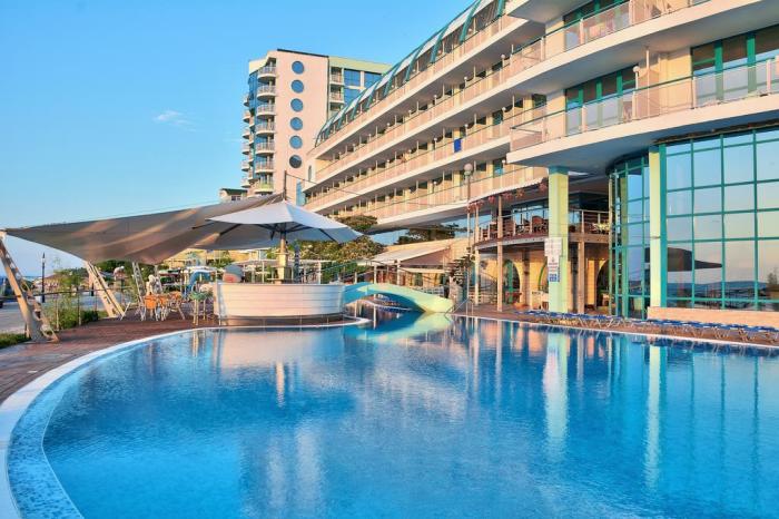 Urlaub direkt am Schwarzen Meer – genau das erwartet Gäste des lebhaften Hotels. Nur 100 Meter vom feinsandigen Goldstrand entfernt, lädt es mit einem All-Inclusive-Angebot zu einem wohltuenden Badeurlaub ein. Hierfür bieten sowohl ein Indoor- als auch Outdoor-Pool die optimale Möglichkeit, auch abseits des Meeres in den Genuss des Wassers zu kommen und auf einer Terrasse die warme Sonne Bulgariens zu tanken. Die jungen Gäste kommen im Kinderpool ganz auf ihre Kosten und können auf einem Spielplatz nach Herzenslust herumtoben. Erwachsene amüsieren sich währenddessen bei einem vielfältigen Fitnessprogramm mit Wasseraerobic, Tennis oder Beachvolleyball oder lassen sich bei einer entspannenden Massage-Anwendung im Spa-Bereich verwöhnen. Abendliche Show-Einlagen bringen dann die gesamte Familie zu einem vergnüglichen Ausklang des Tages zusammen.