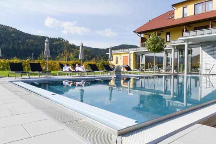 Pool (beheizt)WellnessWintersportFamilienfreundlichPoolSauna- / BadelandschaftSportangebotUrlaub zu zweitParkplatz (kostenlos)EntspannungsangebotWandernRestaurantRad / MountainbikeNichtraucherhotelFitnessNichtraucherzimmerGolfBarrierefrei (teilweise)TennisInternet