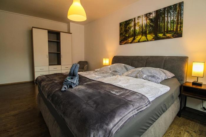 Moderne FeWo SKY Netflix Terrasse Burgblick Boxspringbett Waschtrockner