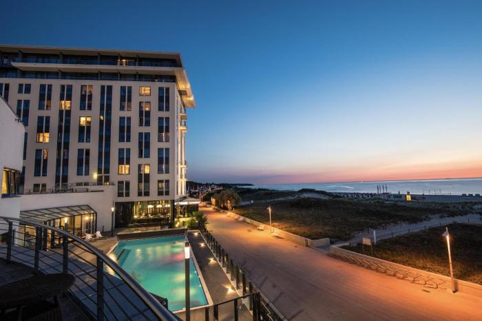 Direkte StrandlagePool (beheizt)WellnessWassersportFamilienfreundlichSandstrandInnenpoolSauna- / BadelandschaftSportangebotPoolMassageSurfenParkplatzEntspannungsangebotTauchenRestaurantSegelnNichtraucherhotelWandernNichtraucherzimmerRad / MountainbikeArztserviceFitnessBarrierefrei (teilweise)GolfInternetReitenTennis