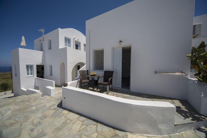 Super schönes Hotel im typischen Stil von Santorini und weißen Farbtönen. Toller Pool und immer ausreichend Liegen da gewesen. Die Zimmer sind nicht riesig aber super schön. Der Ausblick vom Hotel und speziell der Sonnenuntergang vom Restaurant sind atemberaubend. Das Essen auch super lecker!