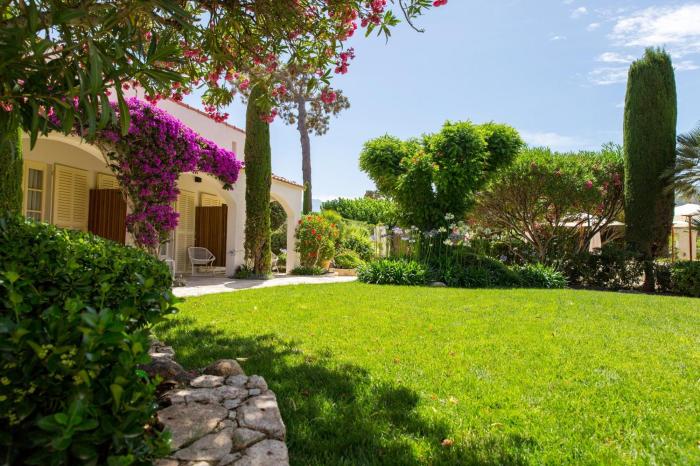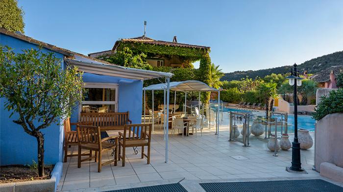 Orange- und sandfarbene Farbgestaltung, hochwertige Ausstattung aus Holz, Stein und Ton, typisch bogenreiche Architektur sowie wunderschön blühende Rankenpflanzen rund um das ganze Haus: Das Hotel präsentiert sich ganz im mediterranen Stil. Der üppige Garten, das südländische Flair und die Nähe zum paradiesischen Calvi Beach vor Korsika überzeugen Urlauber sofort. Aber nicht nur die sattgrüne Wiese, auch der feine Sandstrand lädt zu entspannten Stunden in der Sonne ein. Nur eine schmale Eisenbahnstrecke trennt Gäste vom glasklaren, türkisen Meer. Wer es etwas aktiver mag, der darf sich gerne beim Tennis austoben und am Abend können Urlauber ein paar Cocktails in der hauseigenen Bar genießen.