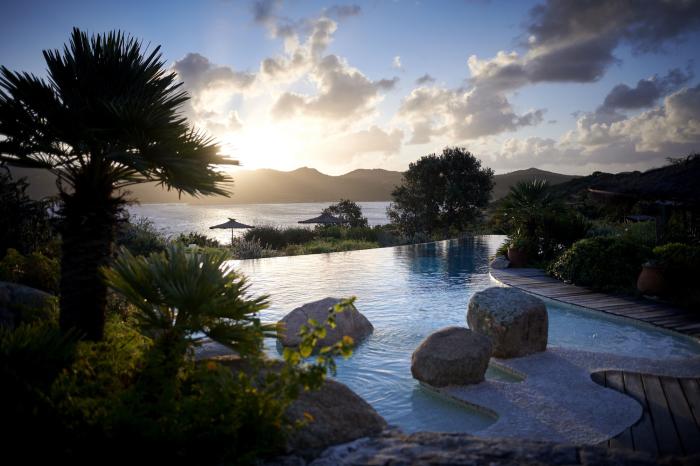 Orange- und sandfarbene Farbgestaltung, hochwertige Ausstattung aus Holz, Stein und Ton, typisch bogenreiche Architektur sowie wunderschön blühende Rankenpflanzen rund um das ganze Haus: Das Hotel präsentiert sich ganz im mediterranen Stil. Der üppige Garten, das südländische Flair und die Nähe zum paradiesischen Calvi Beach vor Korsika überzeugen Urlauber sofort. Aber nicht nur die sattgrüne Wiese, auch der feine Sandstrand lädt zu entspannten Stunden in der Sonne ein. Nur eine schmale Eisenbahnstrecke trennt Gäste vom glasklaren, türkisen Meer. Wer es etwas aktiver mag, der darf sich gerne beim Tennis austoben und am Abend können Urlauber ein paar Cocktails in der hauseigenen Bar genießen.