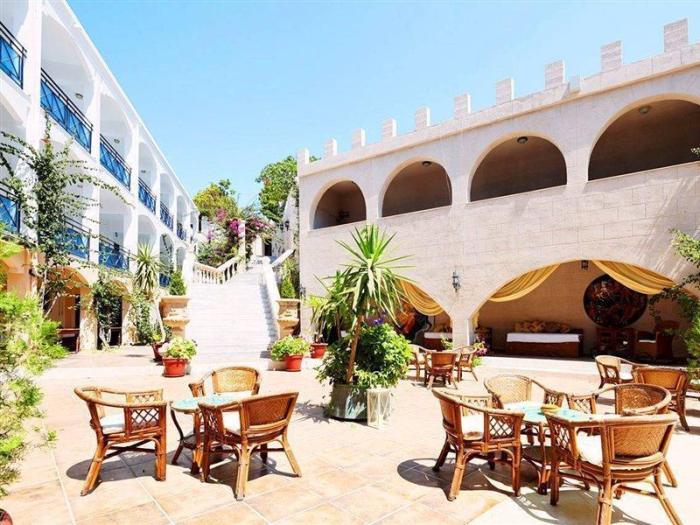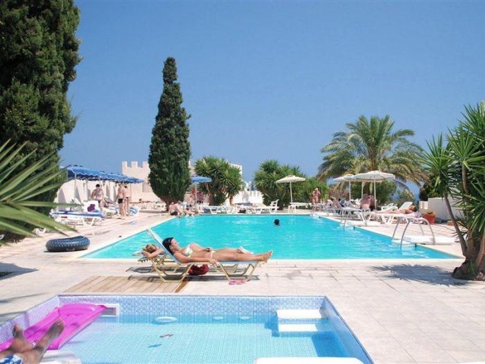 Das gemütliche Familienhotel liegt an der Küste der griechischen Insel Rhodos, auch „Insel des Hibiskus“ genannt. Der schön angelegte Garten vor der Kulisse des im Stil einer Burg erbauten Hotels lädt die Gäste zum Ausspannen ein. Wenn es den Jüngsten nach etwas mehr Aktivität dürstet, kann sich die ganze Familie für Wasserspaß in die beiden hoteleigenen Pools oder zum nahegelegenen Strand begeben. Wer erkundungsfreudig ist, findet in der nur 6 Kilometer entfernten Stadt Rhodos mittelalterliches Flair und den beeindruckenden Großmeisterpalast, der heute ein großes Museum beherbergt.
