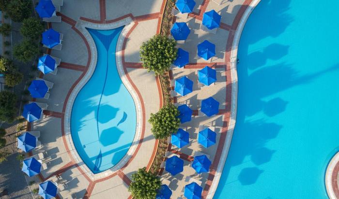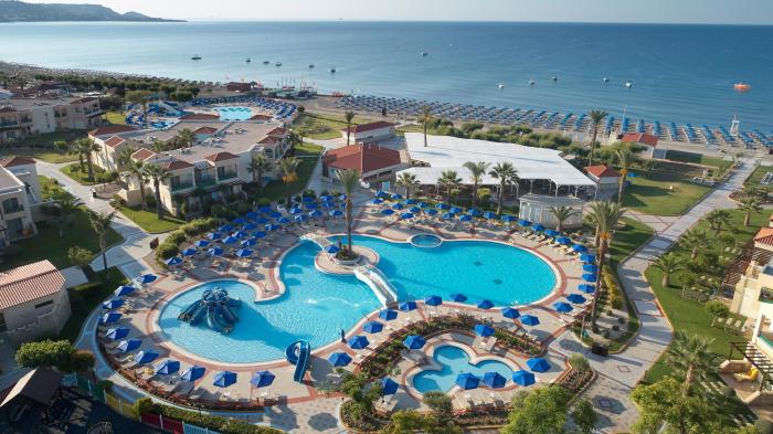 Mit dem Meer direkt vor der Tür beeindruckt dieses Hotel vor allem durch seine vielen Inklusiv-Leistungen. Ruhe suchende Gäste dürfen sich nicht nur an einem von 3 Pools entspannen, sondern auch am hoteleigenen Strandabschnitt sowie im Spa-Bereich mit Sauna, Dampfbad und Whirlpool. Wer einen eigenen Whirlpool im Zimmer haben möchte, bucht eine der komfortablen Suites und gönnt sich Luxus pur. Aktive Urlauber erfreuen sich besonders am Sportprogramm, das unter anderem Bogensport, Tennis, Minigolf und einen Fitnessraum bietet. Auch für die Kleinsten ist mit MiniClub, Spielplatz und Wasserrutschen bestens gesorgt.
