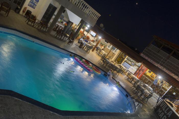 Die Anlage ist weiter vom Meer entfernt und liegt verkehrsgünstig an der Küstenstrasse. Die Zimmer sind geräumig, Betten waren für uns gut, haben gut drauf geschlafen. Anlage ist etwas schwer zu finden, aber mit Google Maps kein Problem.