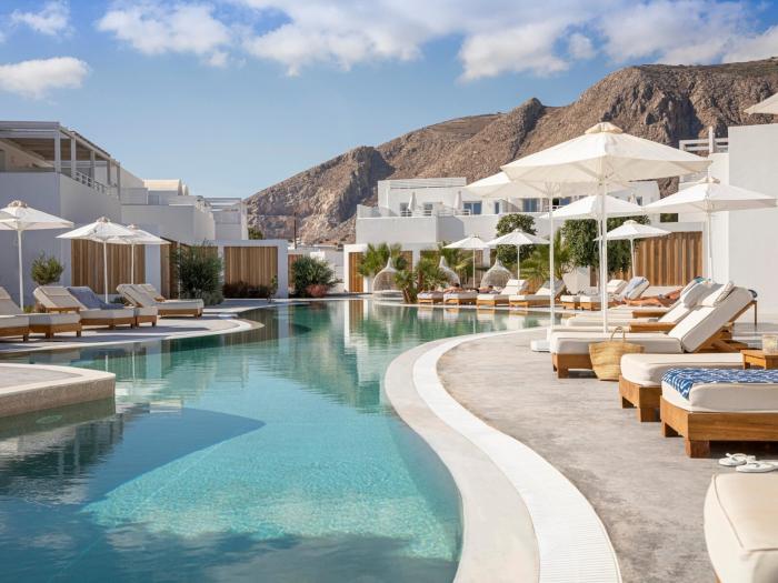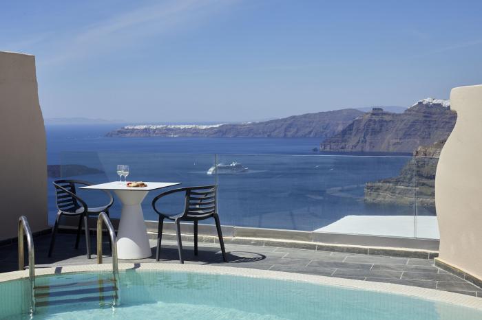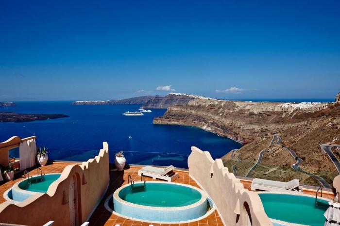 Sehr schöne Anlage mit super Aussicht auf die Caldera und Sonnenuntergang Zimmer sind in Ordnung das Essen ist gut aber teuer