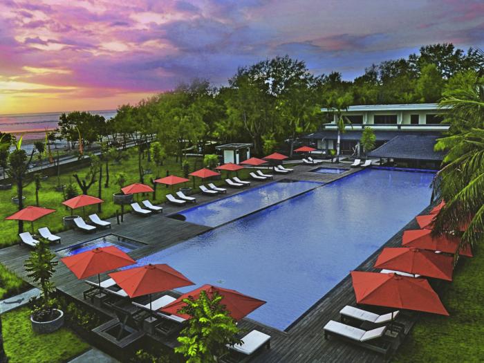 Man wird am Flughafen Lombok abgeholt von einem Privatshuttle. Stehen draußen mit einem Schild auf dem der Name des Hotels steht. Man bekommt Handtücher zur Erfrischung und Wasser. Die Fahrt zum Hotel dauert ca. 1h.