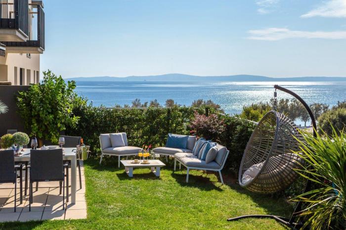 New LUXURY apartment with sea view and PRIVATE heated pool, 50m from the beach