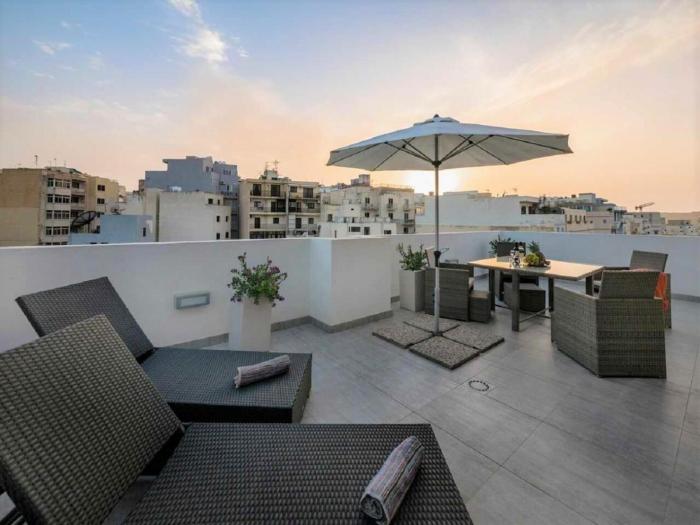 Bugibba Deluxe Penthouse with terrace & communal swimming pool