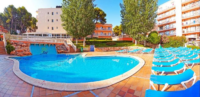 Der quirlige Ort S’Arenal auf der spanischen Sonneninsel Mallorca ist bekannt für seine schönen Strände und das muntere Nachtleben. Mittendrin befindet sich dieses belebte Hotel, das den Inselbesuchern einfachen Komfort und entspannte Tage am Pool bietet. Gäste des Hotels können die Angebote des etwa 100 Meter entfernten Schwesterhotels nutzen und sich über die dortigen Freizeitangebote freuen. Eine nur 50 Meter entfernte Bushaltestelle ermöglicht spontane Ausflüge ins nahegelegene Palma de Mallorca oder ins Landesinnere. Familien mit Kindern freuen sich über eine liebevolle Animation und auch der Strand zum Sandburgenbauen oder Flanieren an der Promenade ist nur wenige Gehminuten entfernt.