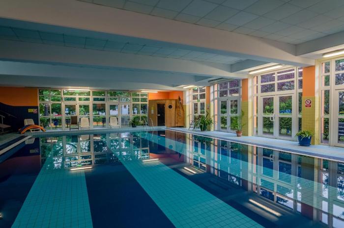 Pool (beheizt)WellnessWassersportPremium / LuxuriösFamilienfreundlichInnenpoolSauna- / BadelandschaftSportangebotPoolMassageWandernParkplatzKosmetische BehandlungRad / MountainbikeRestaurantEntspannungsangebotFitnessWäscheserviceNichtraucherhotelNichtraucherzimmerArztserviceBarrierefrei (teilweise)Internet