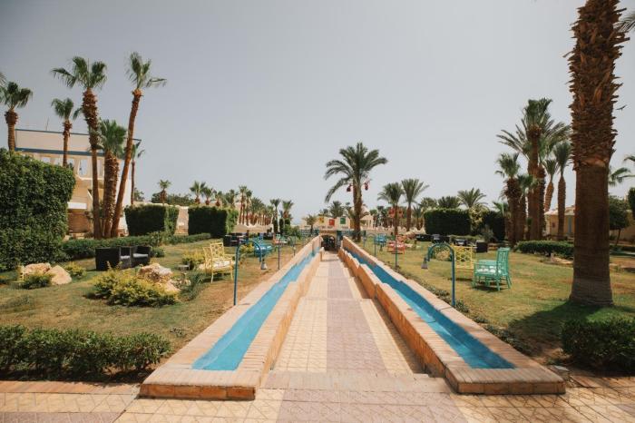 Das Hotel verwöhnt seine Gäste direkt am weißen Sandstrand des ägyptischen Ferienortes Hurghada. Mit Blick auf das azurblaue Meer können Urlauber hier entspannen, während auf Wunsch Erfrischungsgetränke und bunte Cocktails gereicht werden. Wer sich lieber am großzügigen Süßwasserpool aufhält, hat die Wahl zwischen verschiedenen Aktivitäten: Aquagymnastik, Animationsprogramm oder doch eine Runde Beachvolleyball? Ruhiger geht es derweil im Spa-Bereich bei einer Massage mit anschließendem, reinigendem Saunagang zu. Jüngere Gäste vergnügen sich im Mini-Club und dürfen sich abends auf eine Kinderdisco freuen – nach dem gemeinsamen Abendessen zu täglich wechselnden internationalen Spezialitäten natürlich.