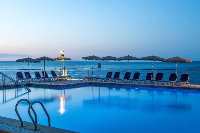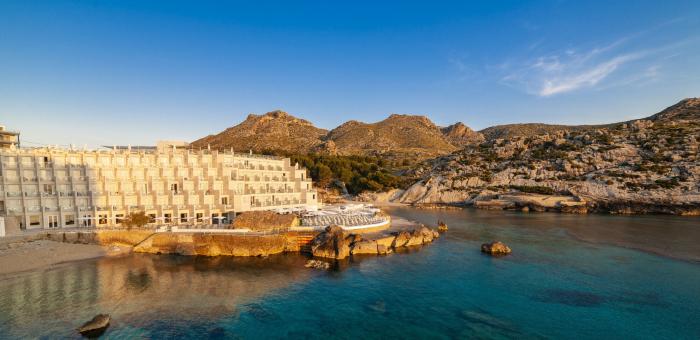 Direkt am Hotel ist kein Sandstrand. Hier gibt es nur Felsen, dafür aber einen direkten Zugang in die kleine Bucht. Der nächste Sandstrand ist im Ort. Leicht zu Fuß oder via Bus etc zu erreichen