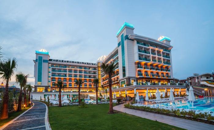 Nur wenige Hundert Meter vom traumhaften Strand der Türkischen Riviera entfernt befindet sich dieses moderne Hotel. Sowohl zu Einkaufsmöglichkeiten in der Nähe, historischen Sehenswürdigkeiten in Side als auch in die Großstadt Antalya ist es nicht weit. Wer lieber in der Hotelanlage verbleiben möchte, nutzt das große Pool-, Sport- und Wellnessangebot. Für Spaß und Abwechslung sorgt das motivierte Animationsteam tagsüber und abends sowohl bei Erwachsenen als auch bei den kleinen Gästen. Kinder dürfen sich außerdem über einen extra Pool mit verschiedenen Abenteuerrutschen freuen.