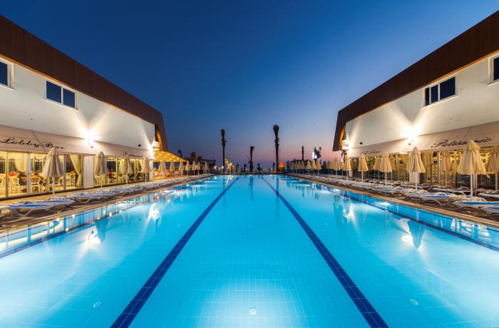 Das komfortable Resort liegt direkt an der Türkischen Riviera und nur wenige Meter vom hoteleigenen Strand und dem typisch türkisfarbenen Meer entfernt. Sonnenanbeter können hier oder am Pool bei wohlig warmen Temperaturen entspannen. Auch die kleinen Gäste toben im kühlen Nass des separaten Kinderbeckens nach Herzenslust herum. Ruhesuchende finden im Spa eine Oase der Entspannung und können dank Sauna, Türkischem Bad und Massagen einfach die Seele baumeln lassen. Aktivurlauber powern sich dagegen beim Tischtennis, Volleyball und im Fitnessraum aus oder unternehmen einen Ausflug zum bekannten Kleopatra Strand. Zudem befinden sich zahlreiche Restaurants, Bars und Cafés in fußläufiger Distanz.