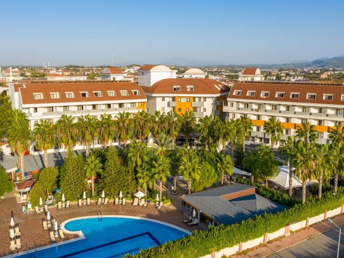 Nahe der beliebten Ferienregion Side an der Türkischen Riviera, liegt diese luxuriöse Hotelanlage. Neben seiner komfortablen Ausstattung und der unmittelbaren Nähe zum hauseigenen Sandstrand besticht das Resort zudem mit seiner ausgezeichneten Küche und vielfältigen Annehmlichkeiten. Urlauber schätzen vor allem den besonders aufmerksamen Service des Hotels. Mit viel Liebe zum Detail werden Gäste vom ersten bis zum letzten Tag verwöhnt. Besonders Familien genießen ihren Aufenthalt im kinderfreundlichen Hotel, das Betreuung und Kinderspielplatz bietet. Nur wenige Gehminuten von der Unterkunft entfernt befinden sich Einkaufs- sowie Unterhaltungsmöglichkeiten.