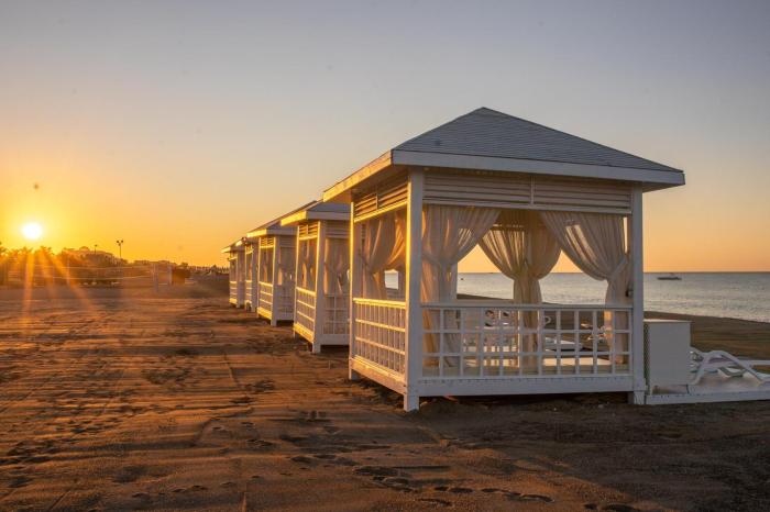 Ja es gibt Strandtücher. Diese können einmal am Tag gewechselt werden.