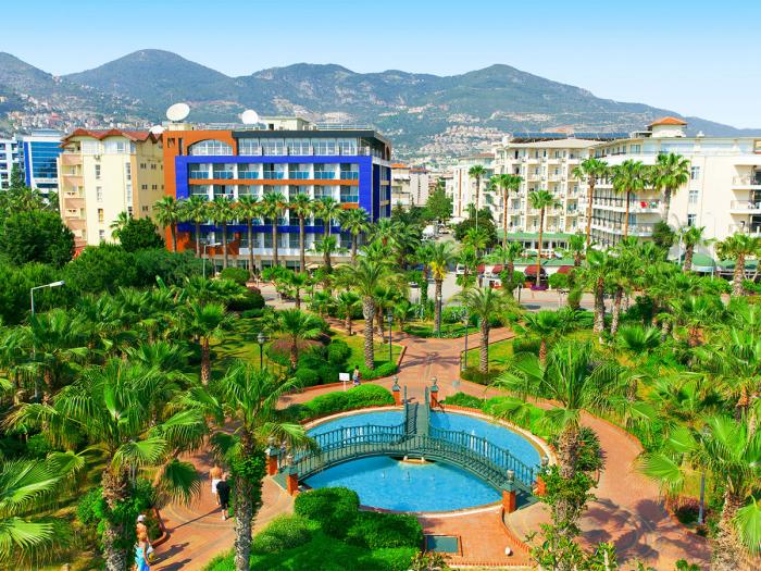 Dieses von Palmen gesäumte Hotel liegt in der idyllischen Justiniano-Bucht südlich von Side in der Türkei. Der moderne Hotelkomplex verfügt über einen eigenen Strandabschnitt und ein vielfältiges Freizeitangebot. Kinder kommen bei einem abwechslungsreichen Animationsprogramm auf ihre Kosten, das für unterschiedliche Altersgruppen angeboten wird und auch Teenager einschließt. Währenddessen können die Erwachsenen im türkischen Bad oder in der Sauna entspannen. Zudem gibt es über den ganzen Tag verteilt verschiedene Buffets und Snacks mit landestypischen sowie internationalen Gerichten. Das Poolangebot wird von der Außenanlage des benachbarten Schwesterhotels um einen Rutschen-, Ruhe- und Actionpool ergänzt.