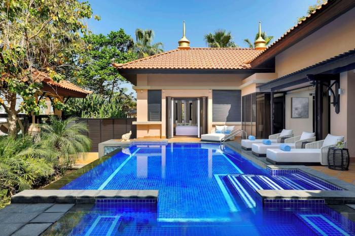 Thailändisches Flair vor arabischer Kulisse in luxuriöser Atmosphäre finden Urlauber in diesem einzigartigen Hotel. Die außergewöhnliche Anlage liegt auf dem Ostflügel der Palm Jumeirah vor Dubai direkt am Sandstrand. Die modernen Unterkünfte sind im Dorfstil rund um die 4 Lagunen-Pools angeordnet und bilden ein traumhaftes, entspanntes sowie harmonisches Ganzes. Besonders die Over-Water-Villen bieten Gästen des Ferienresorts einen grandiosen Blick auf das Wasser, über dem sie zu schweben scheinen. In den riesigen Poollandschaften schwimmen Urlauber nach Herzenslust im erfrischenden Nass umher. Außerdem sorgen 3 A-la-carte-Restaurants und ein erstklassiges Spa für kulinarisches und körperliches Wohlergehen der Gäste.