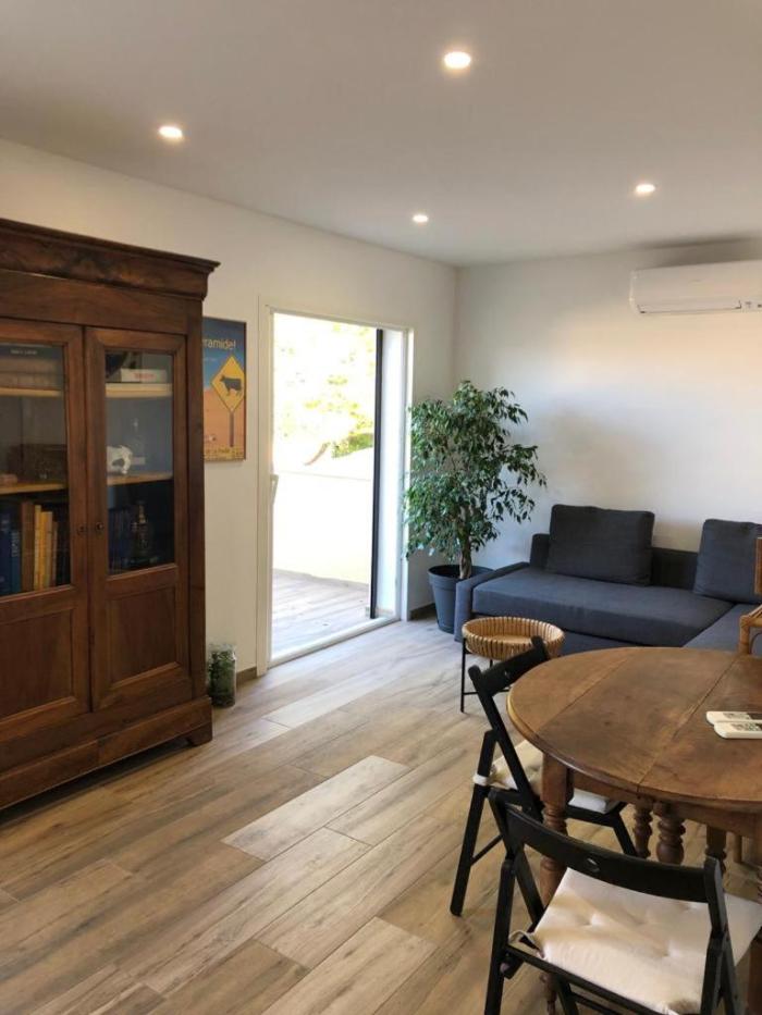 grand studio terrasse de standing, pleine vue village et proche mer